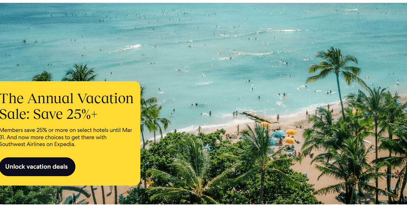 Expedia regularly runs sitewide flash sales, especially during shoulder seasons (like April-May and September-October). Signing up for their newsletter or following them on social media is a good way to get advance notice.
