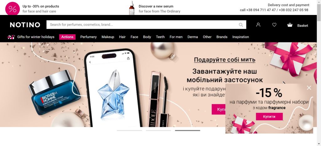 At Official-Notino, their website is designed with simplicity in mind. From the moment you land on their homepage, you'll notice how clean and organized it is. The search bar is prominently displayed for quick product searches, while the main categories are easily accessible from the navigation menu.